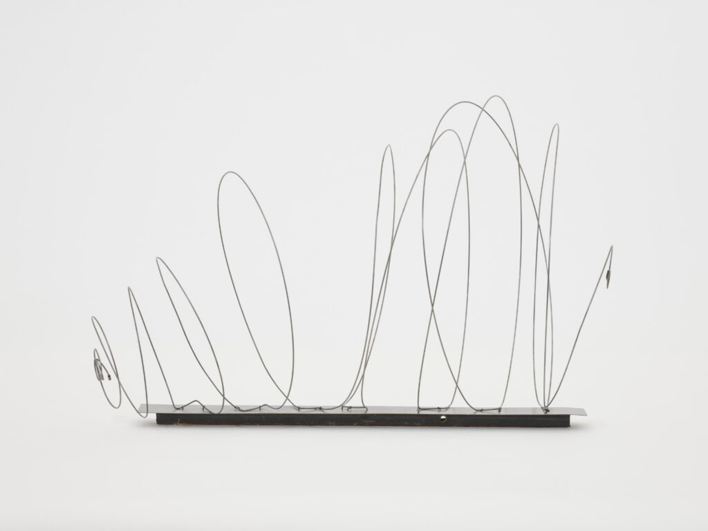 Elle tisse, plie les petits morceaux de métal afin d’évoquer le mouvement, l’expérimentation, la spontanéité et l’instabilité fondamentale de la ligne qui conserve son indépendance quels que soient son emplacement ou sa forme.