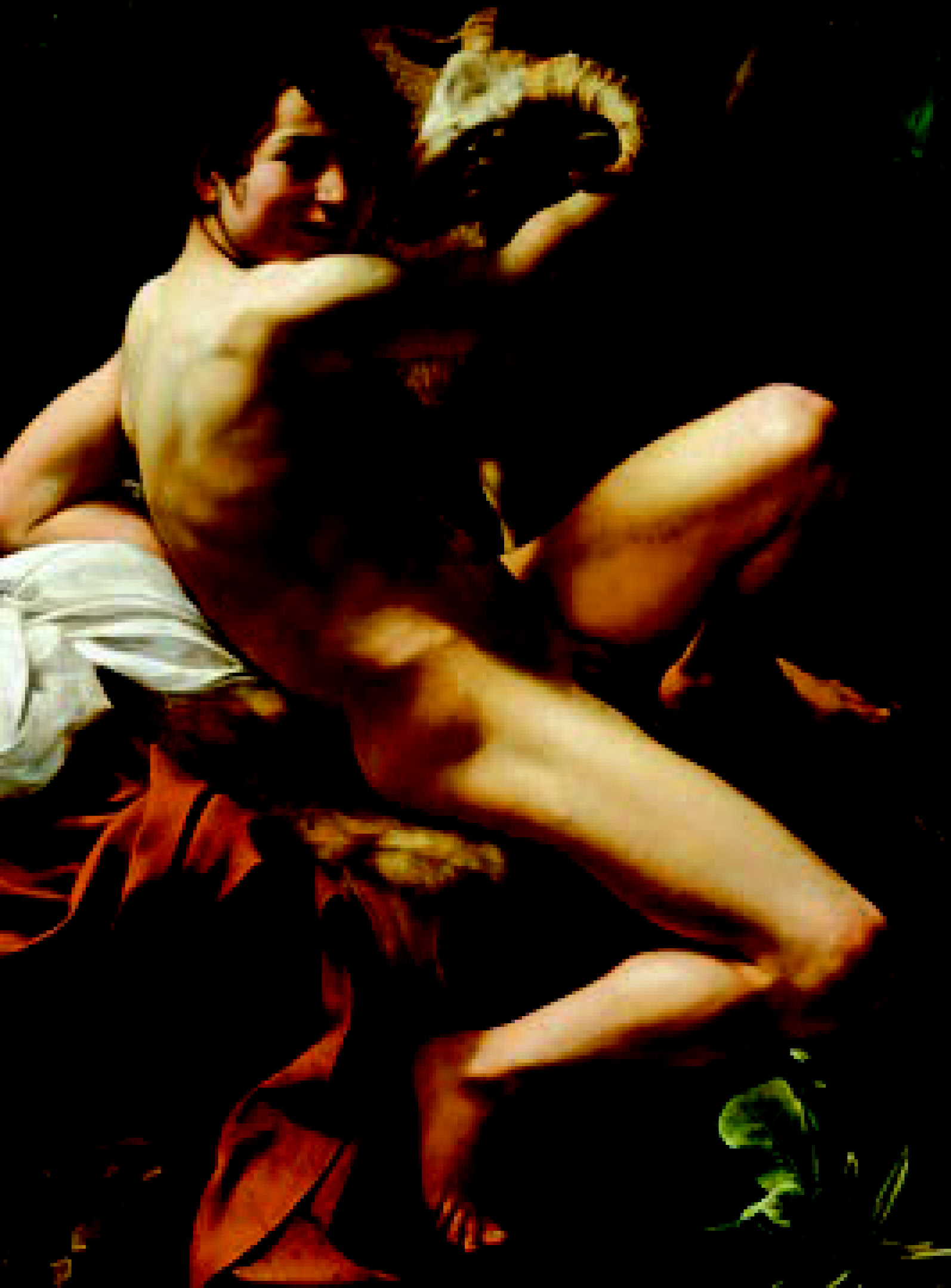 Quant à sa vie privée, elle est encore plus mystérieuse. Il n’a rien écrit, n’a laissé aucun journal, aucune lettre, aucun document de quelque sorte que ce soit. Sa peinture révèle un tempérament passionné, mais on n’a aucune certitude sur l’identité ni même sur le sexe des personnes qu’il a aimées. La pruderie habituelle aux historiens de l’art a longtemps brouillé les cartes. Par exemple, notre connaissance de Caravage doit beaucoup aux recherches de Roberto Longhi, le grand érudit italien, qui a organisé la première exposition de ses tableaux, en 1951, à Milan, revisé les attributions et multiplié les studicaravaggeschi. Mais dès qu’il aborde les mœurs du peintre, une pudibonderie qui nous paraît aujourd’hui comique lui bouche les yeux. «Parmi les nombreuses bizarreries dont Bernard Berenson a voulu gratifier Caravage, se trouve suggérée, avec la seule réserve d’un “peut-être”, celle de l’homosexualité. Passé la première réaction de dégoût, je me suis demandé, plus calmement, quelle origine pouvait avoir une si étrange allégation.» Il est évident que si la seule mention de l’homosexualité suscite son dégoût, l’historien le plus compétent aura l’impression de «salir» l’objet de ses études en lui prêtant des goûts qui lui répugnent. Est-ce une manière honnête de procéder? Un préjugé, quel qu’il soit, est l’obstacle principal dressé devant la vérité. Dans le cas particulier de Caravage, l’intoléranceenvers l’homosexualité expose à ne rien comprendre, ni du peintre, ni même de ses tableaux.Les tableaux: voilà la seule source sûre pour nous guider dans notre enquête. Nous disposons souvent des contrats, documents précieux qui nous renseignent sur le sujet commandé, le nom du commanditaire, la somme payée, l’évolution de la cote du peintre. Surtout, nous disposons des tableaux, et il suffit de les regarder, de les lire, de les déchiffrer, pour surprendre des secrets que ne nous révéleront jamais les archives. A Rome, pendant les premières années, avant d’accéder àla notoriété, Caravage peint avec une régularité compulsive des jeunes gens à mi-corps, et il ne peint que cela. Garçon à la corbeille de fruits, Garçon mordu par unlézard (Florence, fondation Roberto Longhi), Bacchus couronné de pampres (Florence, musée des Offices), Joueur de luth (Saint-Pétersbourg, musée de l’Ermitage), Concert de jeunes gens (New York, Metropolitan Museum). Il faut être aveugle ou de mauvaise foi pour ne pas reconnaître la charge érotique de ces tableaux et les préférences sexuelles de leur auteur. Le Garçon mordu par un lézard porte une rose à l’oreille. Le Garçon à la corbeille de fruits et le Bacchus affichent une opulence charnelle épanouie en mollesse amoureuse. Le Joueur de luth a longtemps été pris pour une fille. L’étiquette de l’Ermitage mentionnait: Joueuse de luth. Efféminement aussi chez les jeunes musiciens du Concert, fardés et alanguis.