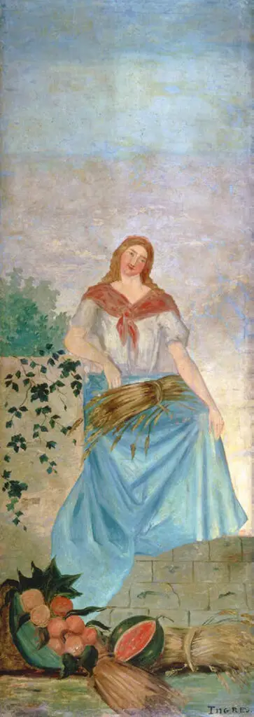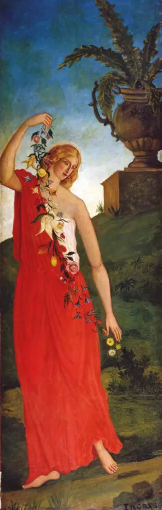Cézanne se voue alors à sa vocation en se lançant dans des sujets traditionnels qui renvoient aux grands décors des XVIIe, XVIIIe et XIXe siècles. Vers 1860-1861, il peint quatre figures élancées, Les Quatre Saisons (Paris, Petit Palais, musée des Beaux-arts de la Ville de Paris), inspirées d’œuvres néoclassiques du musée Granet à Aix-en-Provence, notamment Ossian chantant ses vers (1800) de Paul Duqueylar et Jupiter et Thétis (1811) de JeanAuguste-Dominique Ingres. Avec humour, il signe «Ingres» et inscrit la date «1811», celle justement du Jupiter et Thétis. Quelques années plus tard, Cézanne réalise deux grands paysages pastoraux de part et d’autre de la niche contenant Les Quatre Saisons. Il introduit dans l’un des deux paysages un nu masculin (Baigneur au rocher, Norfolk, Virginia, Chrysler Museum of Art), première apparition d’un thème qu’il développera tout au long de sa carrière. Vers 1868-1869, Cézanne entreprend dans le même espace de s’essayer à la peinture religieuse et peint un Christ aux Limbes (Paris, musée d’Orsay), copie d’un tableau de Sebastiano del Piombo (1516, Madrid, Museo del Prado) et La Madeleine (Paris, musée d’Orsay). Dans ces œuvres, les couleurs, restreintes, sont appliquées en touches larges. De vigoureux empâtements interceptent la lumière et font vibrer la couche picturale, révélant la volonté de l’artiste d’élaborer un style dramatique personnel.