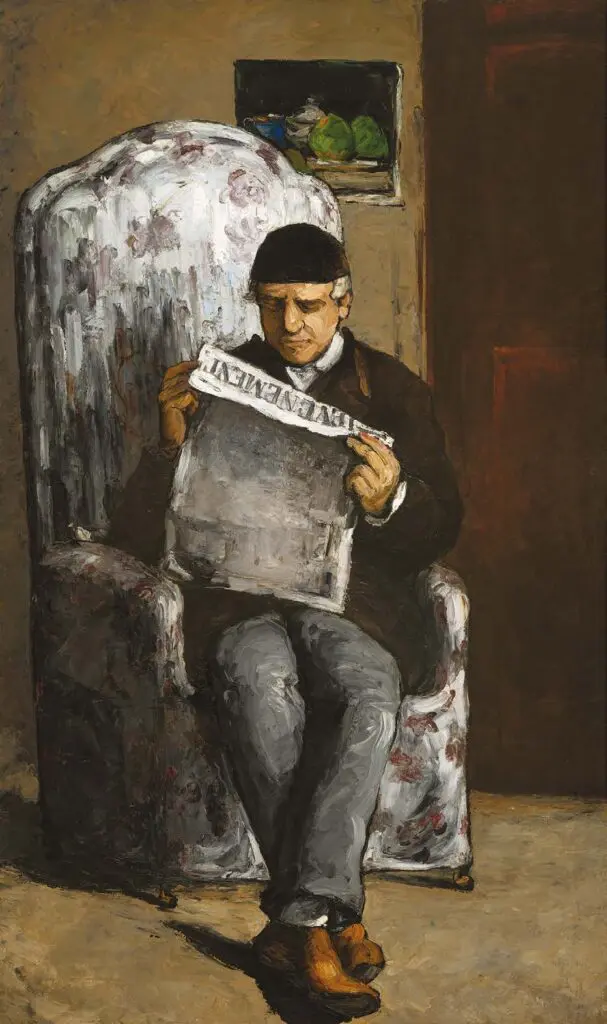 Ce grand salon au Jas de Bouffan est certainement l’atelier où Cézanne, au cours des années dix-huit cent soixante, peint les portraits de membres de sa famille, comme Dominique Aubert, son oncle maternel, qui, à la fin de l’été 1866, se prête à un jeu de mascarade, posant tour à tour en avocat, en moine, coiffé d’un turban ou d’un bonnet. Le peintre fait l’usage du couteau à palette – technique empruntée à Courbet – afin de maçonner ses compositions en lourds aplats. Il peint également au Jas de Bouffan un grand portrait de son père, Louis-Auguste, plongé dans la lecture de L’Évènement (1866, Washington, National Gallery of Art), un journal dans lequel Émile Zola avait publié cette année-là, une série d’articles élogieux consacrés à l’art de Gustave Courbet, Édouard Manet et Claude Monet. Dans le portrait de celui contre l’avis duquel il est parti à Paris pour embrasser une carrière d’artiste, Cézanne intègre une petite nature morte qu’il venait de réaliser, clin d’œil, sans doute, à l’intérêt non avoué de Louis-Auguste à la fois pour son travail et pour la nouvelle peinture. Cette œuvre, comme toutes celles exécutées au cours de ces quelques mois à Aix, marque une étape décisive dans la carrière de Cézanne qui s’affirme désormais en tant qu’artiste peintre.