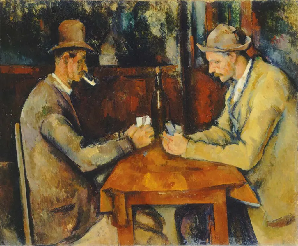 Au cours des années dix-huit cent quatre-vingt-dix, c’est aux ouvriers de la ferme et aux jardiniers du domaine que le peintre s’intéresse, les prenant pour modèles individuellement ou les réunissant en groupes pour la série des Joueurs de cartes, dont il peint cinq versions. Cézanne ne cherche pas à témoigner d’un métier comme Jean-François