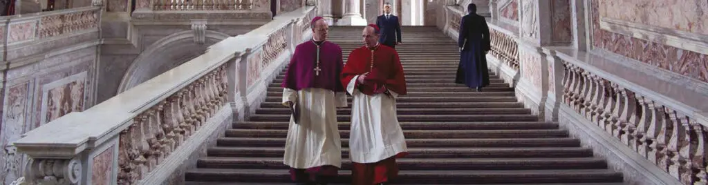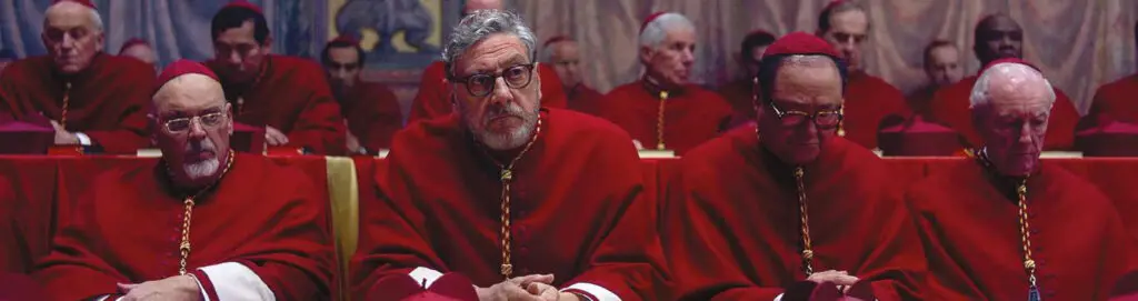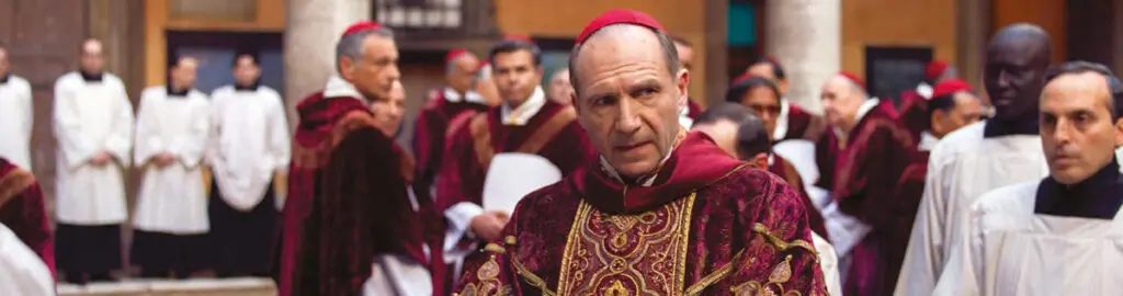 Pà l’élection du nouveau pape – soit, depuis 1878, au Vatican sous le plafond de la mythique chapelle Sixtine. Du côté de l’étymologie, enfin, le conclave est la compression des mots latins cum et clavis, littéralement un endroit fermé à clé. Dans tous les cas, on n’est pas loin de Gaston Leroux et de son célèbre Mystère de la chambre jaune. Sans contes- te, le conclave s’avère un décor rêvé pour déployer un thriller digne de ce nom, chargé d’angoisse, truffé de rebondissements. Dans la lignée d’Eco et son culte Nom de la rose, l’auteur britannique Robert Harris y implanta une fiction en 2016 : le film dont nous parlons est l’adaptation de son best-seller.