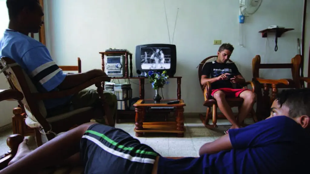 Sous la vaste poutraison des combles du Manoir de Ban, l’immersion cubaine commence avec la projection de Nuestro Mar, sur un air de piano composé de musiques nostalgiques à la Chaplin, et sur un fond sonore de ville et de vie cubaines. Dans la chaleur lourde et moite de la Havane, le regard de la cinéaste se fait contemplatif pour s’immiscer dans le quotidien de ses voisins. Très peu de mots prononcés, la parole est à l’image et l’ambiance à une indolence vague. « Dans une Havane culturellement riche mais économiquement misérable, ces gens sont en permanence en survie, explique-t-elle. Alors le temps qui leur reste à la maison est complètement passif et résigné. Comme s’ils n’étaient que les spectateurs apathiques de leur propre vie ». Un homme fume une cigarette sur le balcon face à la mer grise, une gamine en tutu répète ses pas, une vieille dame crochète, une autre, chanteuse du Buena Vista Social Club entre deux tournées, fredonne Dos gardenias para ti.… Le temps s’écoule au ralenti, tout en mélancolie et demi-teintes.