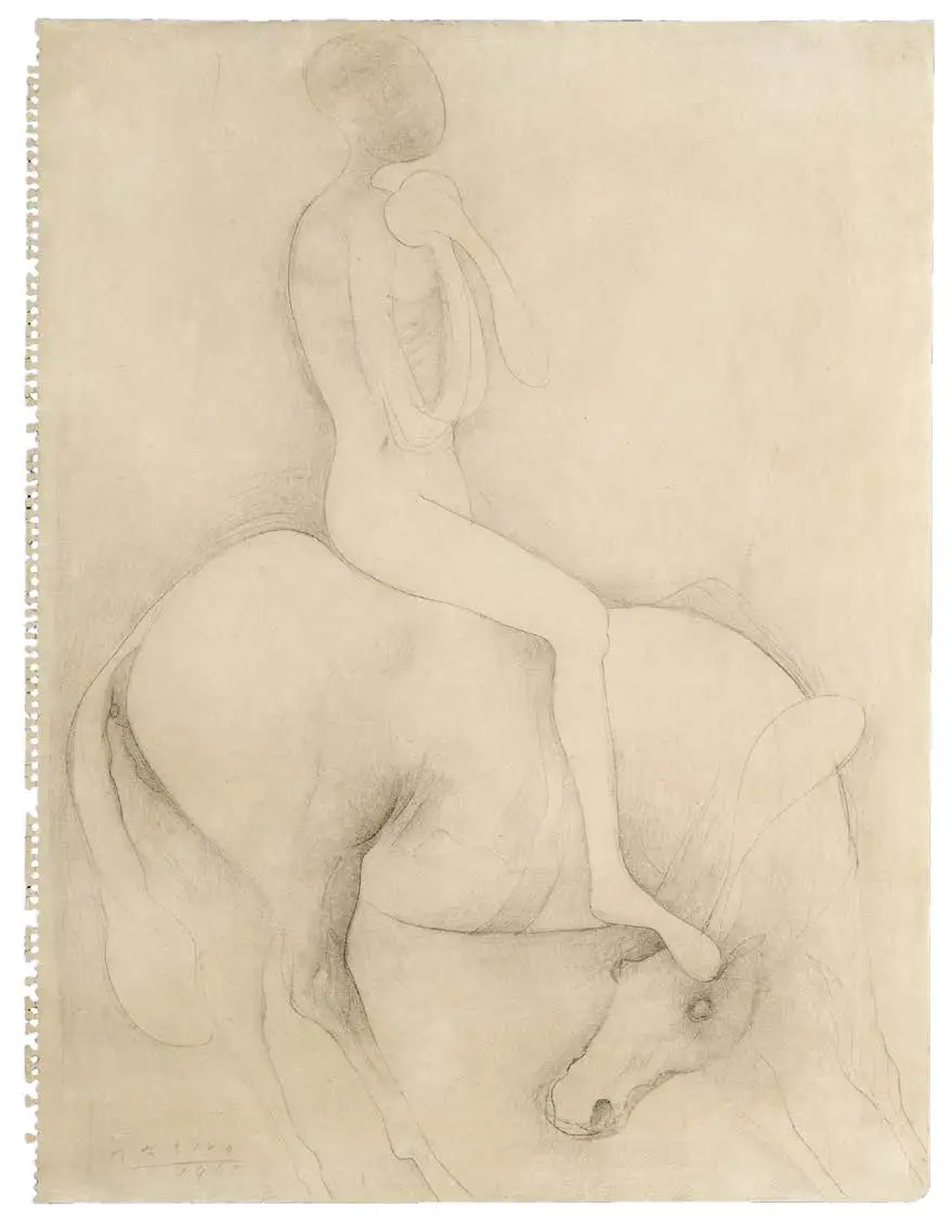 C’est un dessin d’Umberto Boccioni de 1910, «Controluce», qui fait aussi partie de la collection Ramo. Pour moi, c’est un immense artiste, peintre, sculpteur, créateur du mouvement futuriste avec Marinetti. Hélas, il est mort à trente-trois ans. Enrôlé en 1916 dans l’armée de terre italienne, il est piétiné par son cheval lors d’un exercice d’entraînement de cavalerie.