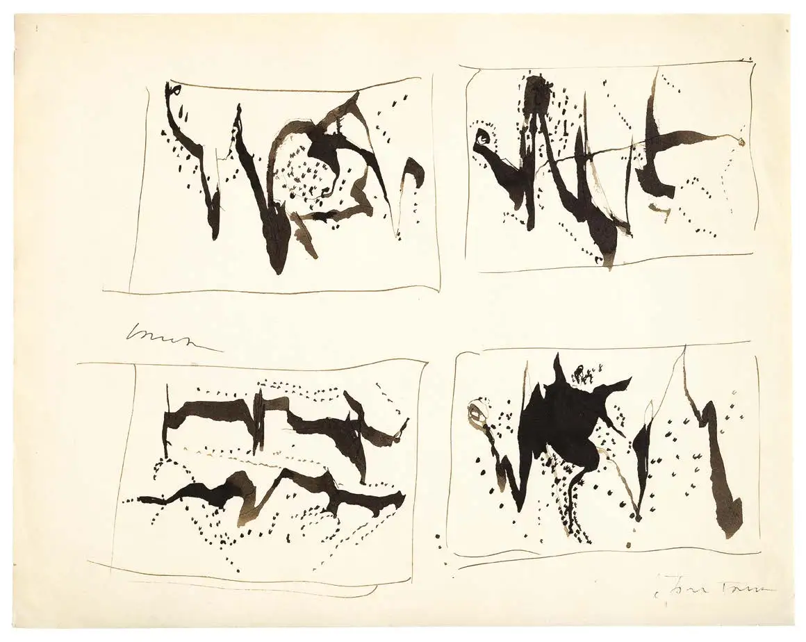 Les arbres du poète et écrivain dadaïste Georges Ribemont-Dessaignes, injustement oublié. Cela n’a pas été facile de mettre la main sur ces gravures exécutées à la plume très serrée et qui n’ont quasiment jamais été exposées. Un recueil de poèmes de Jacques Prévert, «Arbres», paru chez Gallimard en 1967, illustre le travail collaboratif entre lui et son ami. Prévert voyait le dessinateur comme un chasseur de bonheur qui tire le portrait à ces modèles exemplaires et désintéressés que sont les arbres. Pour ma part, je l’ai parfaitement ressenti et je suis très heureux de le mettre à l’honneur comme il le mérite. J’ai aussi eu un véritable coup de cœur pour les aquarelles du peintre marseillais Gérard Traquandi. Il dessine sur le vif des arbres, des buissons. Je lui ai rendu visite dans son immense atelier, où sont accrochés ces minuscules dessins à la délicatesse infinie.