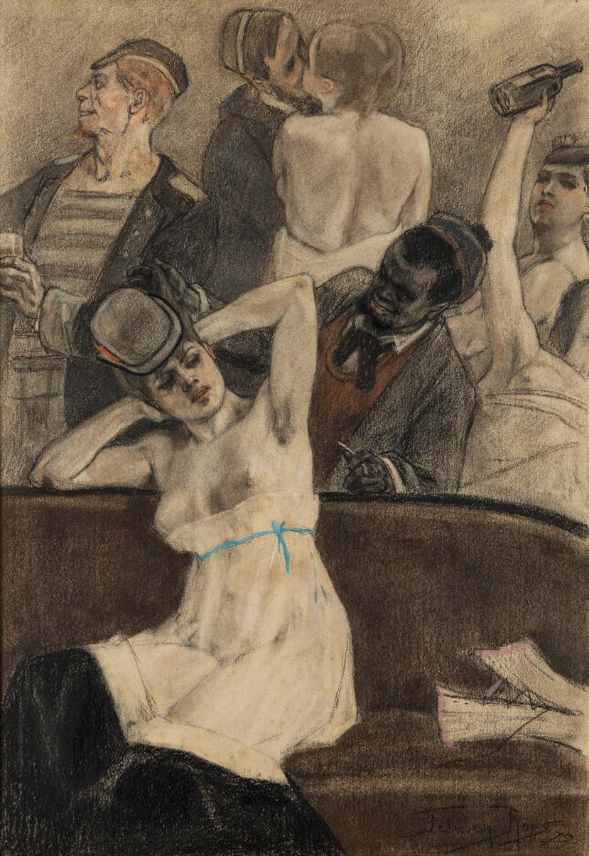 Dans Le Bouge à matelots, l’érotisme s’inscrit dans une réalité plus sociale. Les corps sont lourds, les regards marqués par la fatigue. Le désir devient transaction. Il révèle les hiérarchies et les déséquilibres d’un monde en mutation. La Révolution sociale rend cette dimension explicite: sexualité et pouvoir sont indissociables. Rops perçoit que la morale sexuelle est un révélateur des structures politiques et économiques.