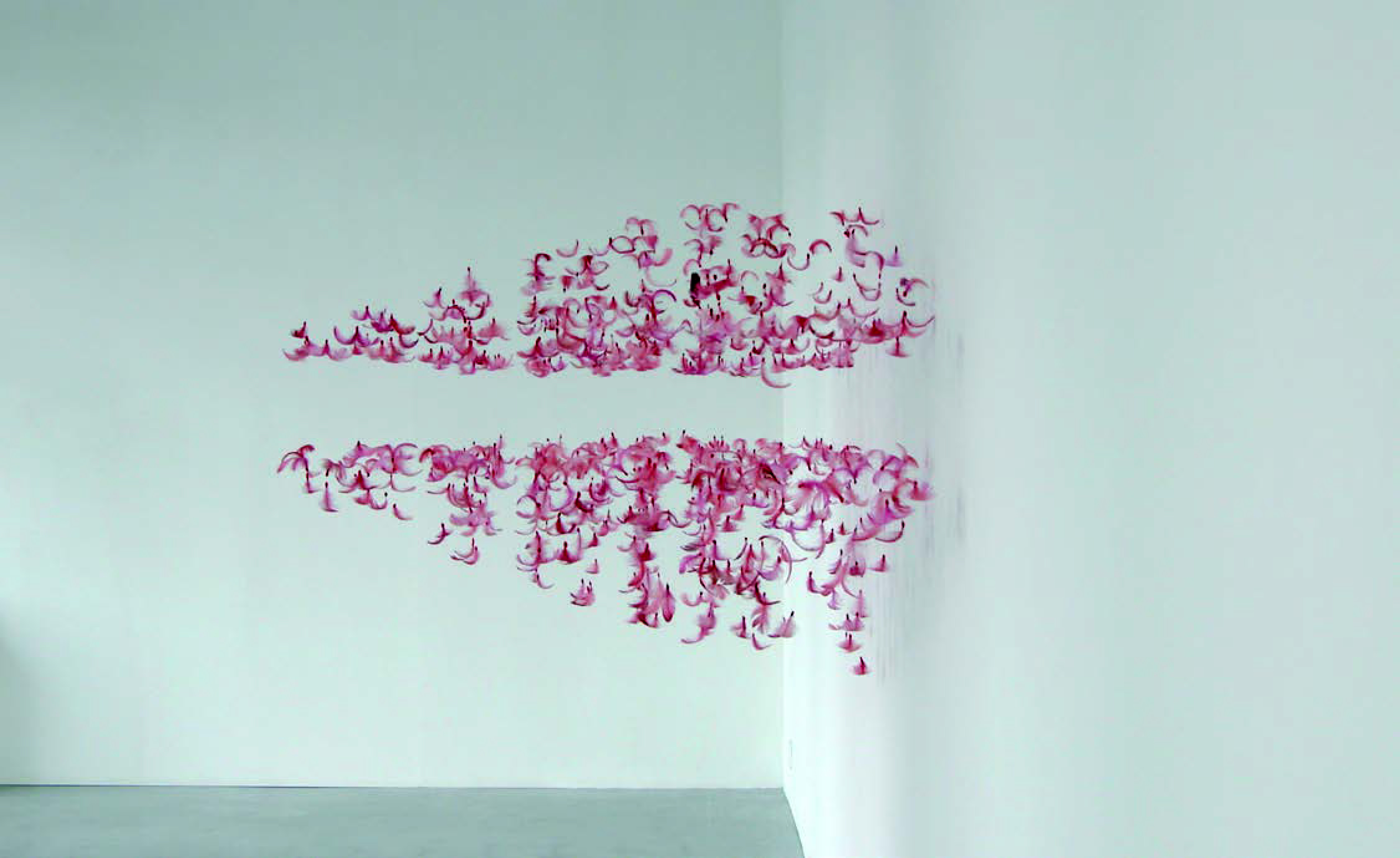 Déjà, lorsqu’elle se maintenait dans le cadre du tableau, elle s’était mise progressivement à travailler ses compositions à traits fins, acérés, «comme pour user la toile, trouer le papier, passer à travers». Puis les lignes et images dépasseront les frontières, s’étireront sur le mur en pluie d’atomes végétaux, pétales de roses, feuilles d’eucalyptus, aiguilles d’épicéa; la forêt d’épingles qu’il aura fallu pour les fixer jouera aussi de sa présence artistique dans cette quête de la liberté.Sur la plage de l’Estérel, ce jour-là, avec l’idée de jeter ces envols de plumes sur des fils ténus, presque invisibles, va s’amorcer la création d’un univers pointilliste en trois dimensions qui, depuis lors, la mène jusqu’au bout d’elle-même. Il y a une très belle phrase de Nietzsche sur la sagesse de l’oiseau qu’Isa Barbier, dans son atelier de Marseille, aime serappeler. «Voici, il n’y a pas d’en haut, pas d’en bas. Jette-toi çà et là, en avant, en arrière, toi qui es léger. Chante, ne parle plus». Offertes au mouvement, à la lumière, ses structures aussi précises et minimalistes qu’un haïku palpitent au moindre frémissement de l’air, à la vibration d’un pas, d’un son, à la caresse d’une onde de froid ou de chaleur. Elles parlent de la folie de penser que l’on est sur un sol fixe, se mettent en suspension dans l’instant entre l’inertie terrestre et la fuite à la recherche de l’au-delà du ciel. «N’être plus qu’un souffle, disent-elles, pour être partout à la fois, comme devant la vie vulnérable et par là, si précieuse».Au fil des années, l’oeuvre se fait de plus en plus fine, de plus en plus légère, tel un voyageur sans bagages. Telle Isa Barbier qui, avec une poignée de plumes, du fil nylon et un peu de cire, déploie ses installations dans les espaces privés et publics.