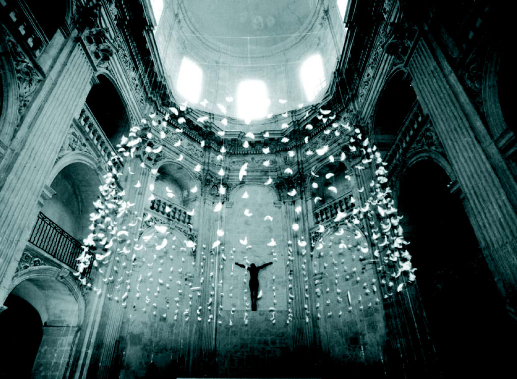plumes d’aigle des USA, fils, cire, diamètre 300 cm, hauteur 130 cm Chapelle du Sacré-Cœurà Aix-en-Provence