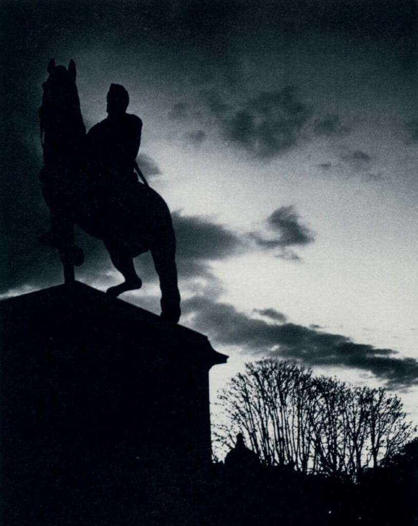 Vous préférez au mot photo le mot image. Pourquoi ? La photo, englobe toute sorte de chose que ce soit le reportage, le portrait, l’événement, la photo de famille… On met tout et n’importe quoi derrière ce mot. La photo est vague alors que l’image est composée. Composée et onirique ? J’aime appliquer le rêve à la réalité. Mon truc dans la photographie est d’amener la réalité à une utilisation quelconque qui ne tombera pas forcément dans l’onirique qui est trop souvent abstrait, absurde et trop écarté de la réalité. Dans Farewell to Daylight, vous publiez une photo de la statue équestre d’Henri IV à Paris. Avez-vous pensé à Don Giovanni ? C’était exactement l’inspiration à ce moment-là. J’y ai été très sensibilisé par le cinéma muet allemand dans lequel toutes les images sont composées. Aujourd’hui, on a des films rapides avec une action en flux où l’on monte dans des voitures, où tout repart très vite. A l’époque, le storyboard ne comportait que des images. Or, moi, ce que je veux au cinéma, c’est que ça ne parle pas trop et que visuellement on se souvienne de chaque plan. Il y a des films que je connais par cœur et dont je puis me souvenir des séquences mais surtout des plans. Je pense ici aux travaux de Carl Mayer et au Cabinet du Docteur Caligari. Aujourd’hui, j’ai beaucoup de mal à me souvenir d’un plan. Le cinéma muet allemand est sans doute ce que j’aime le plus au monde.
