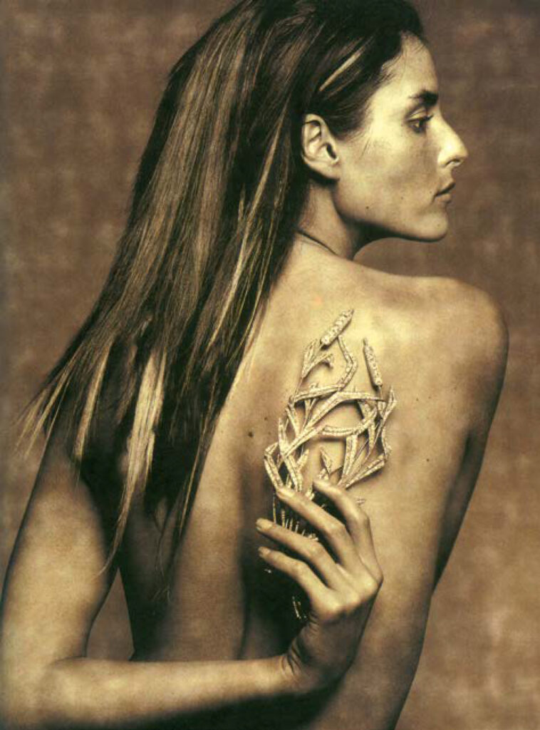 Retrouvez-vous ce goût de la théâtralisation chez Helmut Newton (1920-2004) ? Non, là c’est encore autre chose ! Newton se place dans un univers où l’érotisme joue un rôle principal, ce qui n’est pas le cas de mes photos qui relèvent d’une esthétisation, et non d’une érotisation. J’ai des visions idéalisées de la vérité et je veux que la vérité soit. Avec Helmut, même si on n’aime pas le sujet ou l’anecdote qu’il met en image, il y a toujours au final une belle photo. Il a été beaucoup imité par des photographes qui suivent ces sujets mais le résultat n’est pas là; les photos sont moches et n’ont pas du tout la même force graphique. On retient tout de suite une photo d’Helmut tandis que tant d’autres tombent dans l’oubli peut-être parce qu’ils croient faire de l’art avec du luxe au lieu de faire du luxe avec de l’art. Il a fait plus d’une trentaine de portraits de moi qui n’ont jamais été publiés. Toute cette série s’appelle Wilhemstrasse parce que j’y suis habillé en redingote grise, comme les personnes d’avant la guerre de 14 et qui eurent des responsabilités jusqu’au IIIe Reich. Les prises de vue ont été faites à Paris, dans le jardin de mon actuelle maison avec un maître d’hôtel en second plan ce qui fait très Wilhemstrasse. Mais personne ne les a jamais vues parce qu’Helmut est mort quelques temps après au volant de sa voiture, à 83 ans. Cette série n’avait pas été réalisée pour une publication. Même à la Fondation Newton de Berlin personne n’a de tirages de cela. Dans votre univers photographique, il y a Clarence H. White (1871-1925), Edwards Steichen (1879-1973) ou Paul Strand (1890-1976) qui photographie New York et les américains de la rue…Et aussi Alfred Stieglitz (1864-1946), l’un des plus grands au début du XXe siècle mais encore Tina Modotti (1896-1942) qui a fait des choses sublimes trente ans après lui. Sa modernité étonnante alliait son tempérament mexicain, sa soif de liberté et un sens inné de la présence. Dans le registre du picturalisme français, j’aime beaucoup Robert Demachy (1859-1936) mais préfère un Paul Citroen (1896-1983) qui, comme Man Ray (1890-1976), organisait soigneusement une perspective pour produire un effet réaliste. Puis, ils déformaient intentionnellement les images pour les adapter à leur thème.