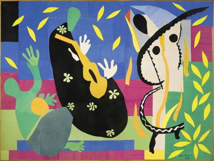 À la Libération, qui ouvre aussi pour le pays une «seconde vie» après la défaite de l’envahisseur, le peintre regagne la capitale. Au Salon d’Automne de 1945, plusieurs de ses œuvres récentes sont exposées – dont La Blouse roumaine et son éclatante palette bleu-blanc-rouge. En acquérant plusieurs toiles pour le Musée national d’art moderne, l’État entérine la reconnaissance du créateur comme figure nationale. Beaucoup se seraient contentés de cette consécration. Matisse en profite, au contraire, pour repartir de zéro. Car ici s’amorce l’ultime révolution de sa vie: à la fin de 1945, il réalise La Lyre, qu’il considère comme sa première véritable gouache découpée. Peu à peu, formes et papiers colorés envahissent les murs de son atelier, qu’il rebaptise «l’usine». Parallèlement à une commande de tapisserie, Matisse cisèle depuis Paris, dans son appartement du boulevard Montparnasse, sa dernière grande série de peintures, qu’il achèvera en 1948: les Intérieurs de Vence.