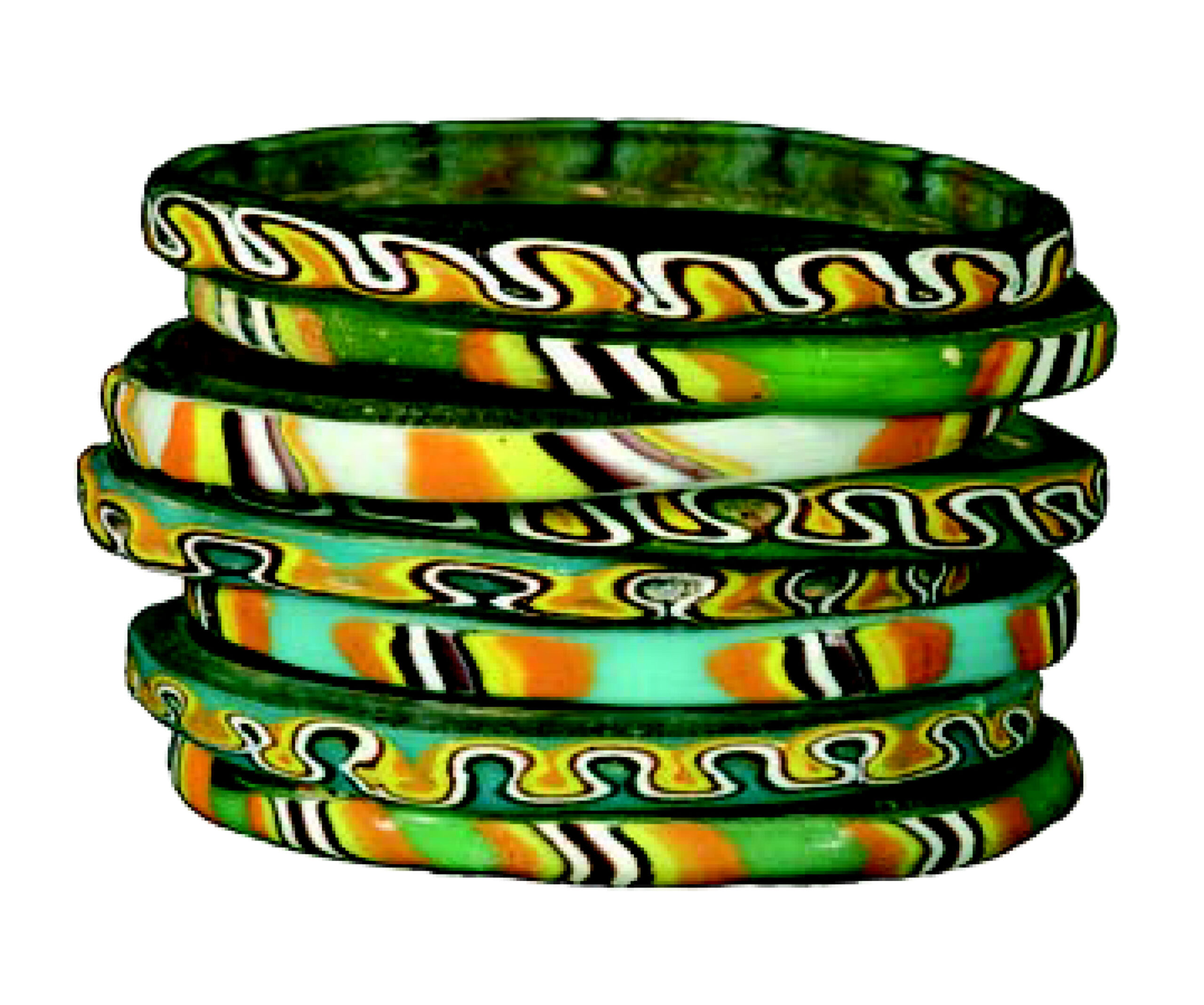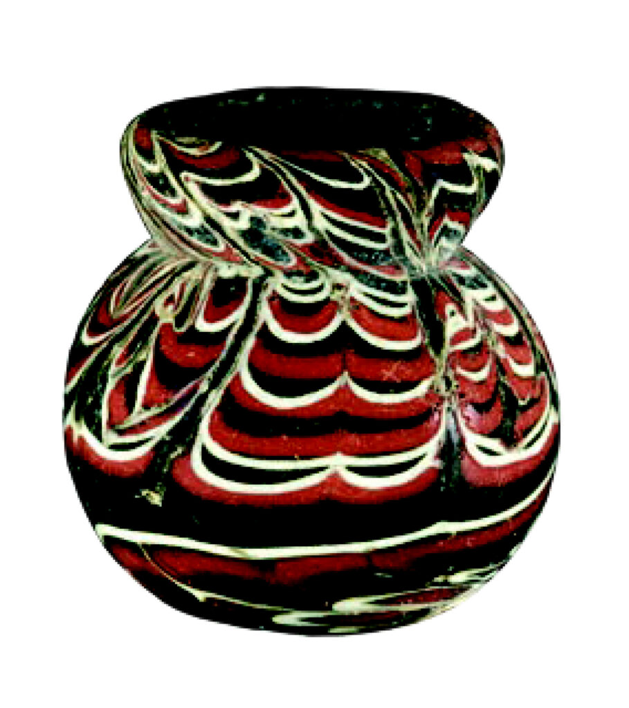 Pâte de verre: préparée à froid, elle était placée dans un moule en terre réfractaire et soumise au four. On en faisait des bijoux (perles, pendentifs, châtons de bague) ou des vases.