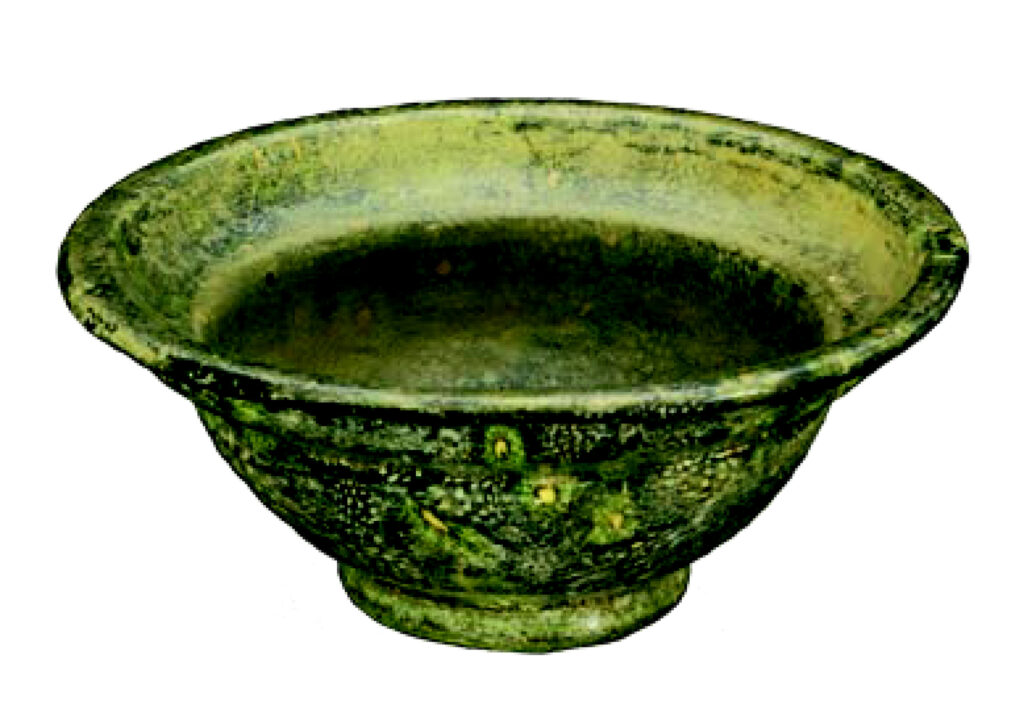 Faïence: poterie à pâte opaque, poreuse, colorée ou blanche. On la recouvrait d’émail pour la rendre imperméable. Cuisson à environ 1’000°C.