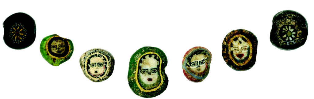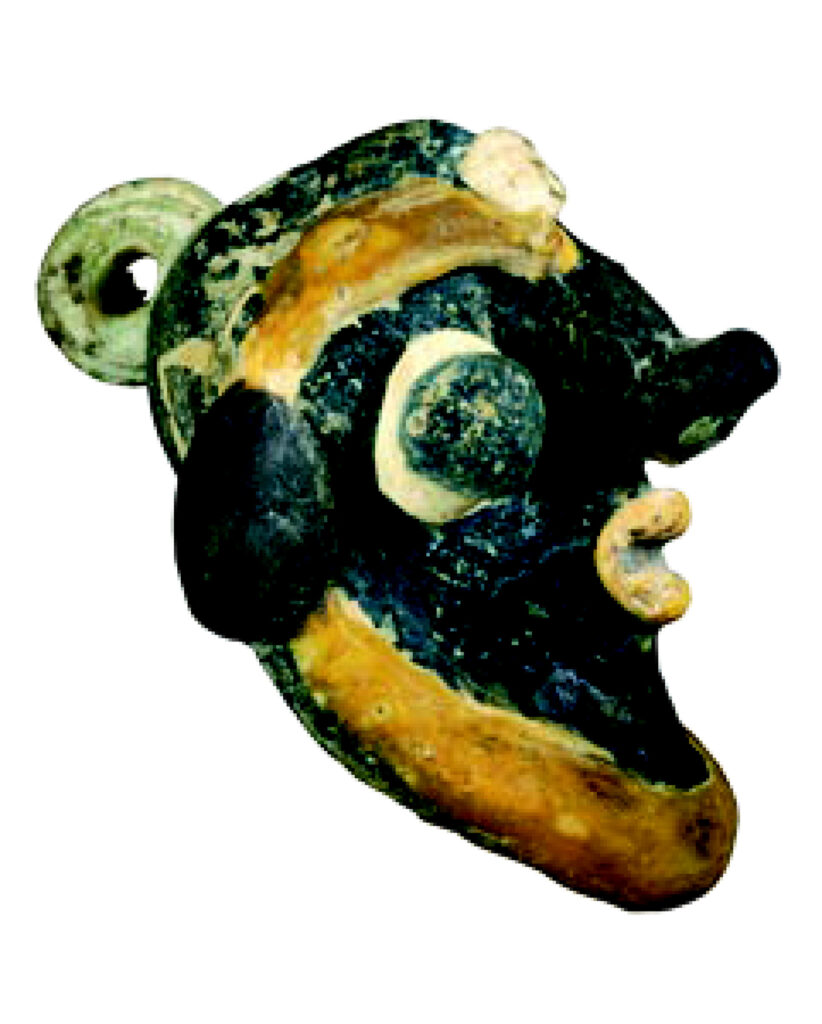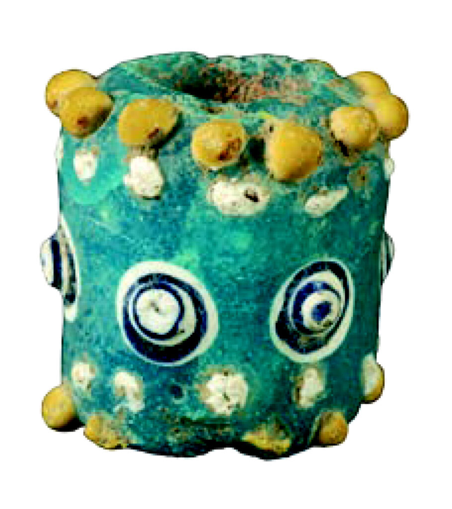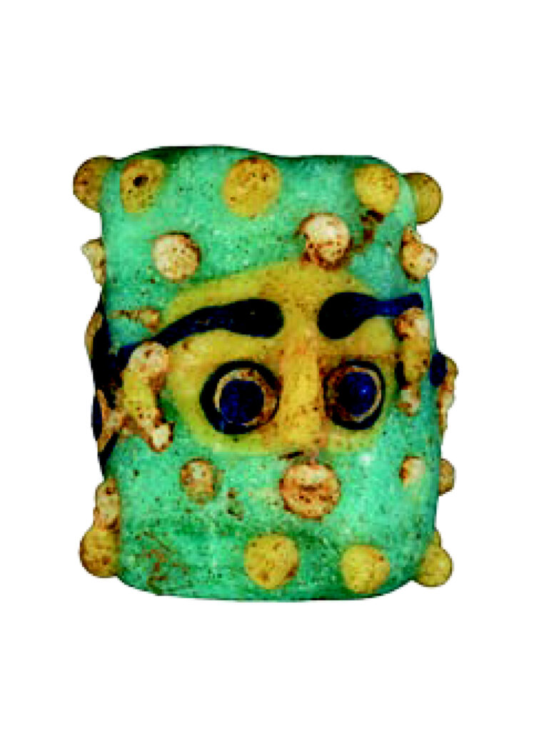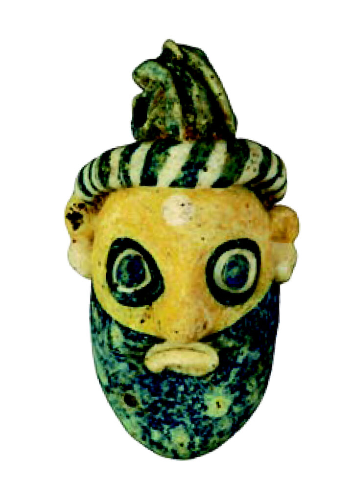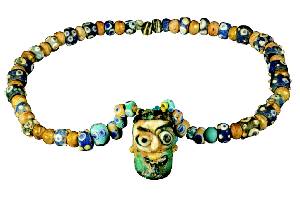 Carthage: au VIIe siècle av. J.-C., la colonie phénicienne d’Afrique du Nord se fit une spécialité des colliers en pâte de verre colorée, avec pendentif en forme de tête humaine ou animale. Son succès allait perdurer pendant trois siècles.
