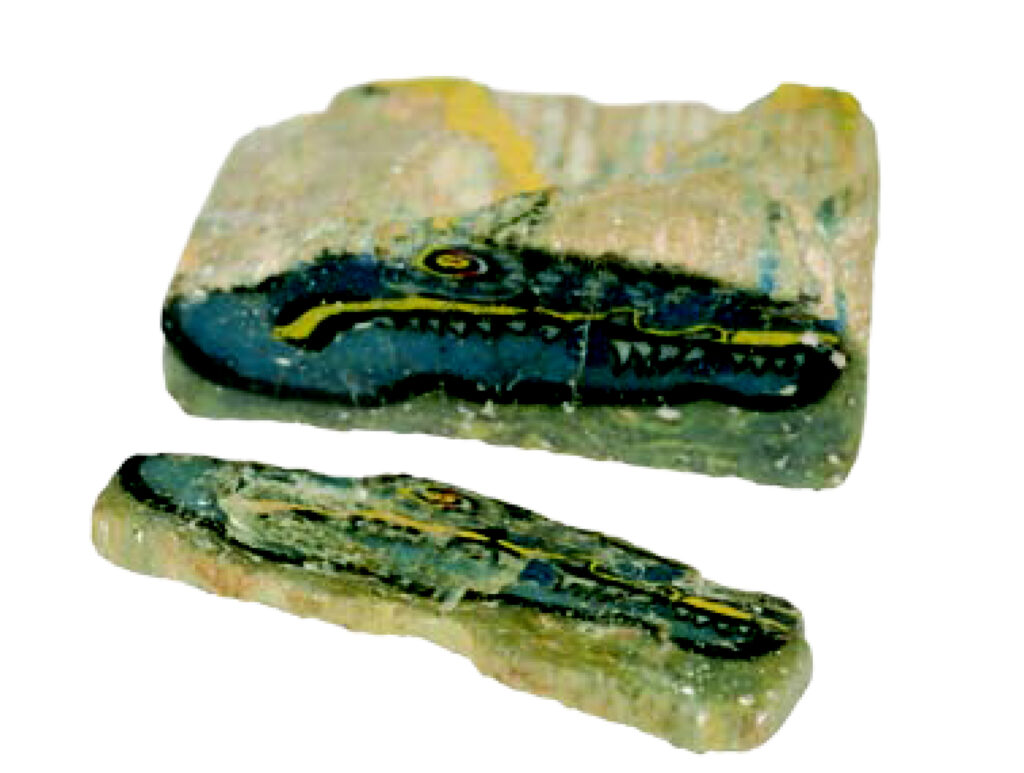 Mosaïque : les artisans d’Alexandrie étaient réputés pour leurs mosaïques de verre, formées à partir de baguettes colorées, sectionnées et soudées ensemble.