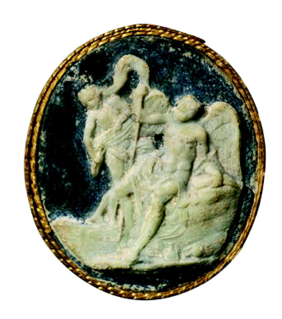 Gemme: à l’époque romaine, les bijoutiers remplaçaient souvent les pierres fines transparentes par de la pâte de verre, colorée à l’identique. Celle-ci était ornée d’une gravure, exécutée à l’aide d’une pointe d’acier, actionnée par un archet.
