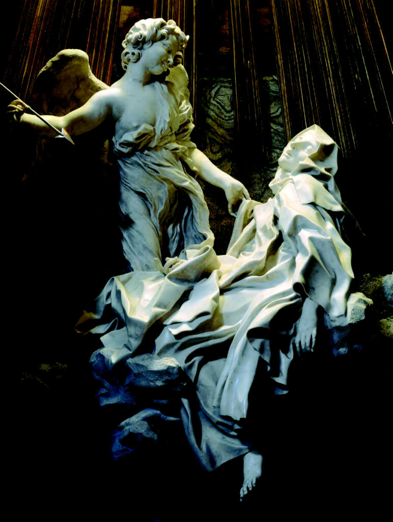 Les crises économiques, politiques, religieuses et les maladies qui déchirent le XVe siècle italien bouleversent le corps social et les artistes traduisent ce sentiment d’inquiétude par l’expression de la Beauté inquiète. On assiste à une dissolution des règles, à une violation des canons classiques de la Beauté. Des conceptions subjectivistes et particularistes de la Beauté apparaissent. Les maniéristes se lancent vers le fantastique pour échapper au classicisme qu’ils considèrent comme vide. Ils privilégient les figures en mouvement, le S, figure serpentine qui ne s’inscrit plus dans un quadrilatère géométrique. Calculabilité et mesurabilité cessent d’être des critères objectifs. Si on prive le Beau de ses critères de mesure, d’ordre et de proportion, on le destine à des jugements subjectifs. La Beauté maniériste combat les règles sévères de la Renaissance et creuse les formes qui se sont à peine stabilisées selon les canons classiques. L’Io du Corrège est un bon exemple de l’art maniériste. Le passage du Maniérisme au Baroque est moins un changement d’école que l’expression de cette dramatisation de la vie. Effectivement, à la Beauté immobile et inanimée du modèle classique s’est substituée une Beauté dramatiquementtendue, L’extase de Sainte Thérèse en est un parfait exemple. L’œuvre de l’artiste le plus représentatif de l’époque baroque montre une mise en scène provocante de Sainte Thérèse percée par la flèche de l’ange de l’amour divin. Cette sculpture montre bien la prolifération excessive des formes caractéristiques de l’époque baroque.
